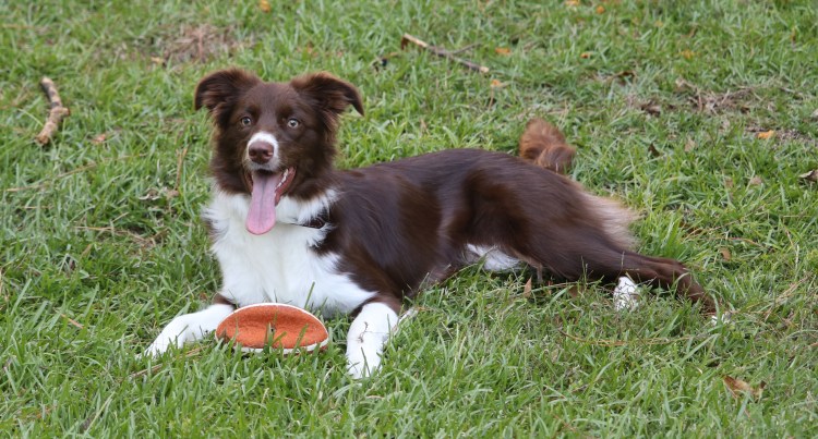 Photo #3: Lucy takes a much needed breather while relaxing on the grass in between sets.