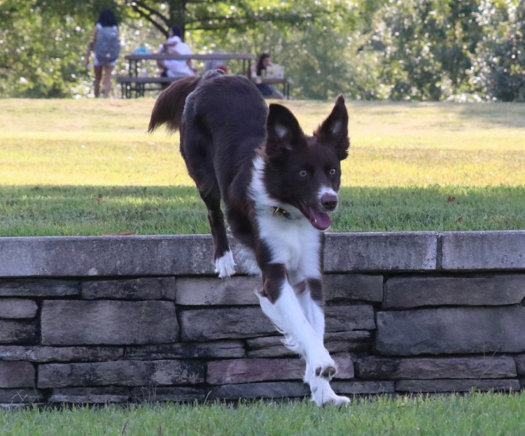 Photo #4: Lucy doing some retrieval drills to work on her speed and focus, getting some serious air in the process.